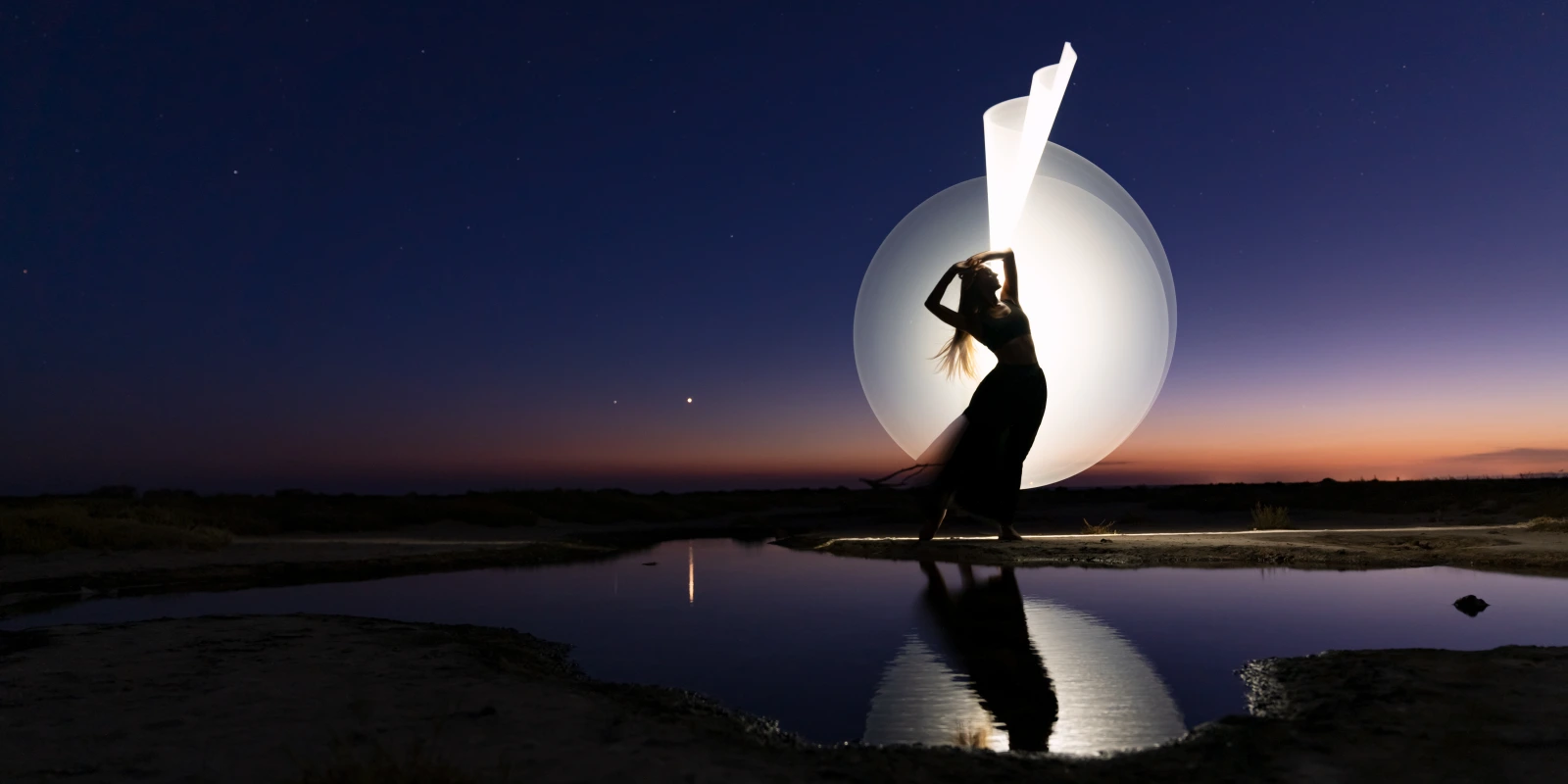 In generale va bene anche usare un giubbotto pesante: lo reggo con il braccio che non muove i tubi luminosi durante il light painting. Soluzione poco pratica perché si rischia di non nascondersi bene durante lo scatto in lunga esposizione, sia perché può scivolare per qualche motivo e finire in acqua, nel fango etc.